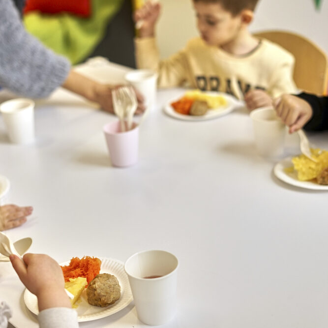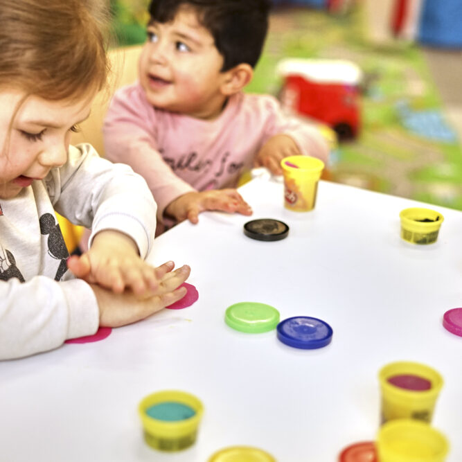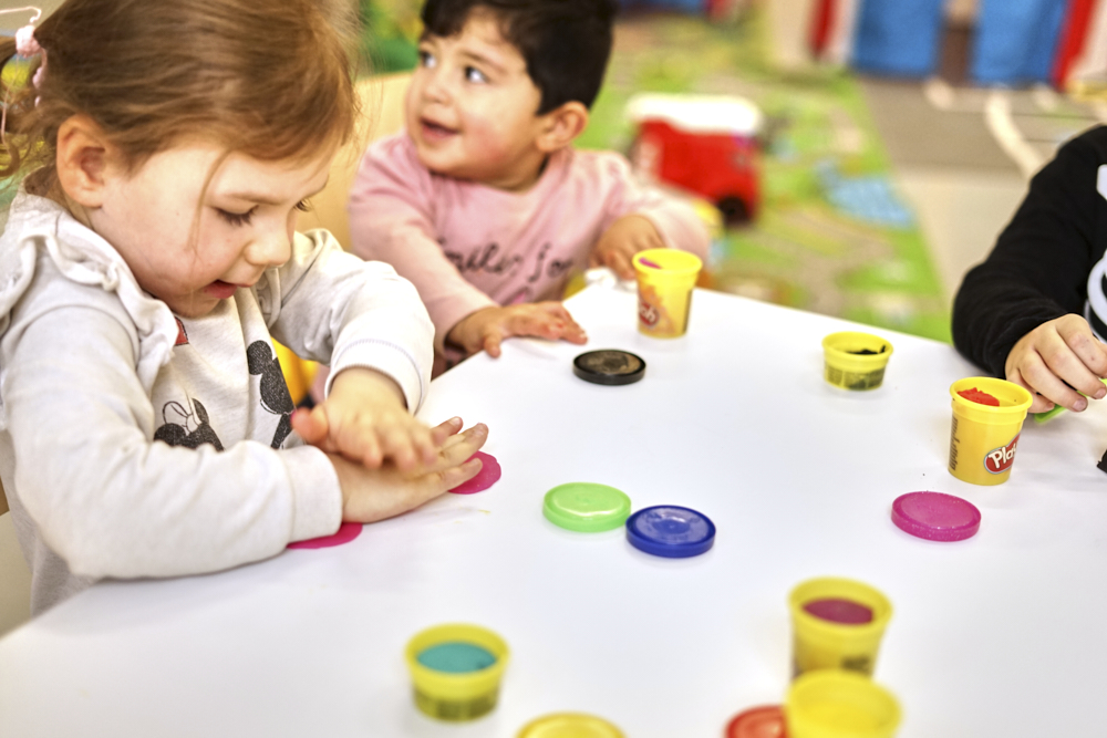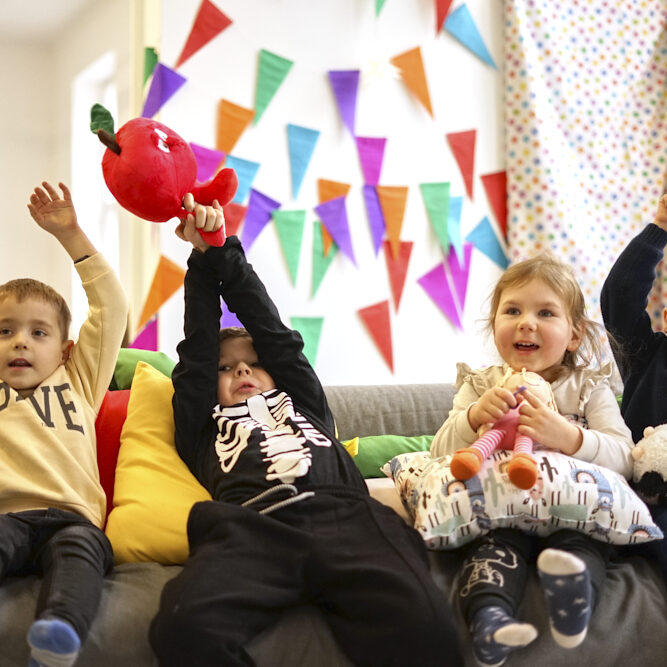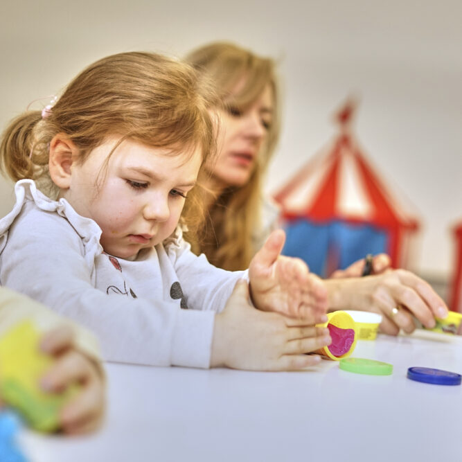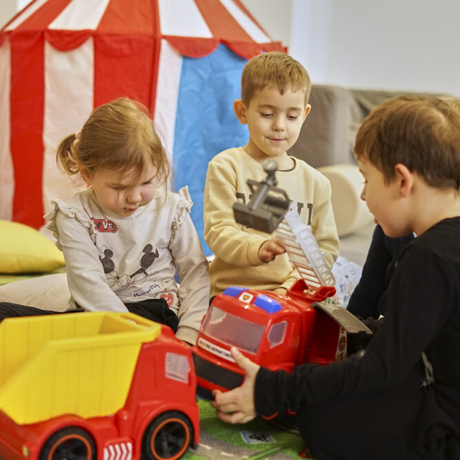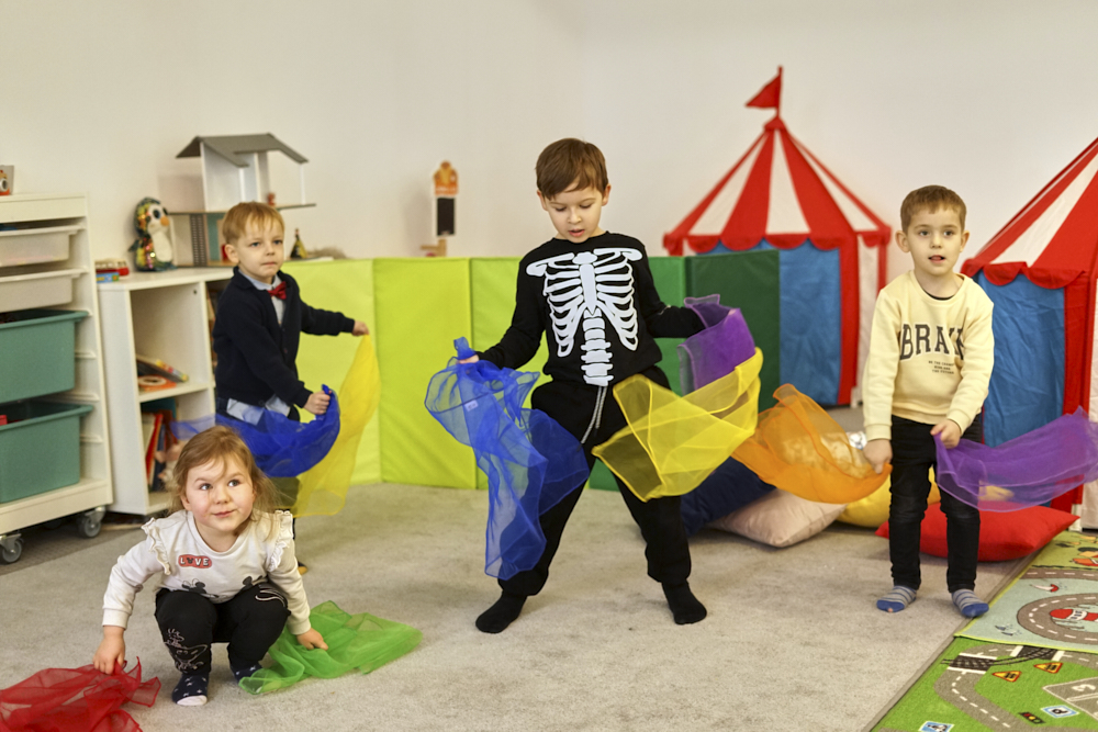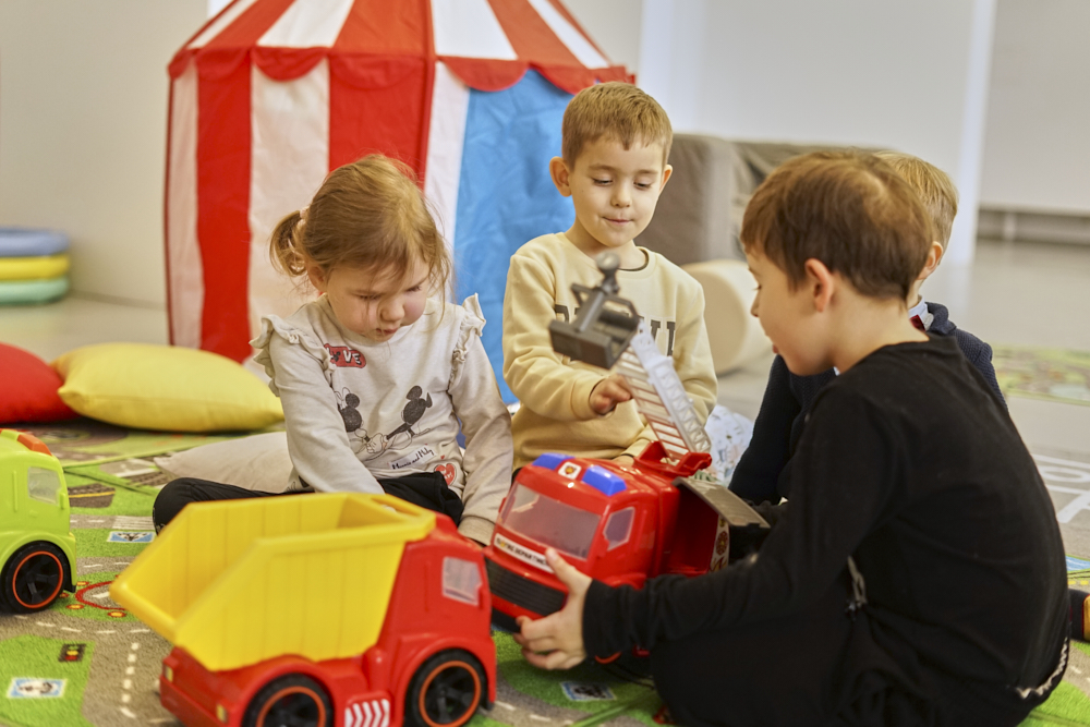 Nie oddzielajmy dzieci od ich bliskich. Na początku organizujmy wspólne spotkania tak, żeby dzieci mogły w każdej chwili mieć kontakt ze swoją mamą lub inną osobą, z którą czują się bezpiecznie. Poznawajmy się przez wspólną aktywność. Nawet, jak nie znamy ukraińskiego (bo raczej nie znamy), możemy coś razem zrobić.